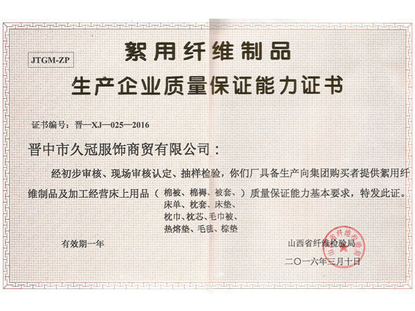 山西久冠服飾有限公司位于晉商故里山西省晉中市。公司注冊商標“久冠”,是山西省教育學會學生服被裝專業(yè)委員會會長單位,中國質量萬里行促進會理事單位,中國教育裝備行業(yè)協會學校后勤裝備管理分會常務理事單位。